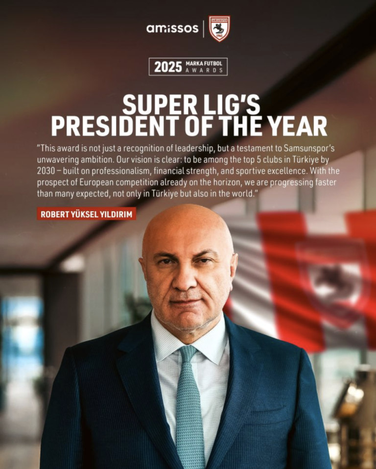 At the 11th Marka Futbol Awards, Samsunspor President and Amissos Founder Robert Yuksel Yildirim has been honored as ๐ง๐๐ฟ๐ธ๐ถ๐๐ต ๐ฆ๐ฬ๐ฝ๐ฒ๐ฟ ๐๐ถ๐ดโ๐ ๐ฃ๐ฟ๐ฒ๐๐ถ๐ฑ๐ฒ๐ป๐ ๐ผ๐ณ ๐๐ต๐ฒ ๐ฌ๐ฒ๐ฎ๐ฟ – a testament to vision, leadership, and unwavering commitment.